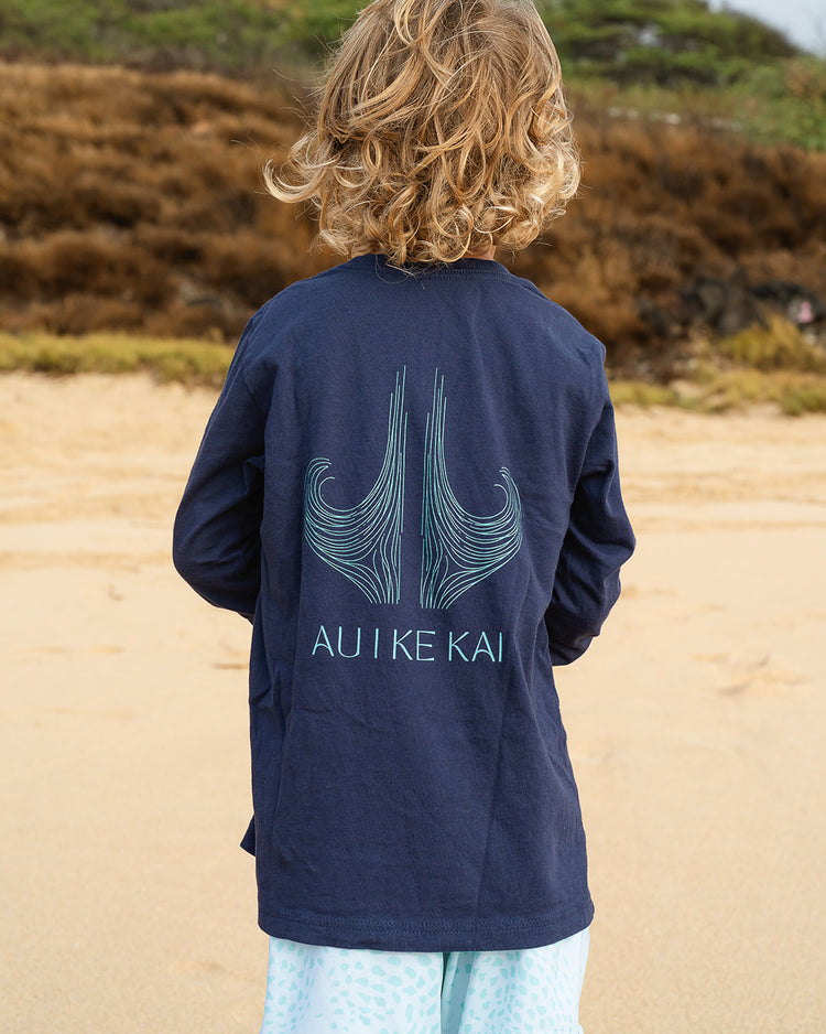 Au I Ke Kai Youth Long-Sleeve Shirt | 100% Plastic-Free, Soft Cotton, Youth Sizes S–L